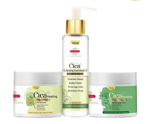 Inveda Cica Healing Kit This Kit Contains:1. Inveda Cica Healing Face Wash - 100 ml2. Inveda Cica Healing Day Cream - 100 ml3. Inveda Cica Healing ...