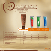 • FREE Dental Consultation with Every Pack : Clove Oral care provide FREE dental consulation to all the custommers with every purchase, customer can scan the QR code available inside the product to claim the benefits.,SENSITIVE TOOTHPASTE- Clove Sensitive Toothpaste gives you instant Soothing from teeth sensitivity. This toothpaste will help in reducing toothache. Contains Intergradient Perfected By Dentist and effective to tackle the root cause of sensitivity,SCIENCE-BACKED INGREDIENTS: Clove Sensitive is Customized Toothpaste Developed For Indian Mouth After Studying 1.5 Million Indian Patients By Indian Dentist At Clove Dental. Potassium Nitrate soothes the teeth nerves to reduce the sensation of pain and fights tooth sensitivity.,ONLY GOOD INGREDIENTS: Clove Sensitive Toothpaste is Triclosan Free | Paraben Free |Peroxide. Our toothpaste is also MADE SAFE Certified. Unlike other brand Clove Sensitive is perfected by Dentist,RECOMMENDED ORAL CARE ROUTINE: Brush your teeth twice daily for 2 minutes with Clove Sensitive toothpaste, rinse with mouthwash for 30 seconds, & replace your toothbrush every 3 months to keep teeth & gums healthy, preventing tooth decay, gum disease & bad breath.​​, LOVED BY CUSTOMERS, CREATED BY EXPERTS: Clove oral care products are perfected by dentists. Customized Toothpaste Developed For Indian Mouth Manufacture at State of a art Manufacturing Unit. Best Of World Flavours From Symrise Germany