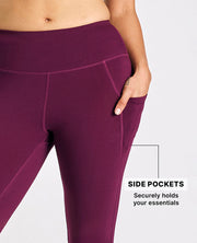 Women High Waist Cotton Side Slit Flared Pants Burgundy