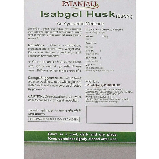 Patanjali Isabgol Bhusi: 100 Gm Isabgol, also called psyllium, is obtained from the seeds of plantago ovata and is very high in dietary fiber. It h...