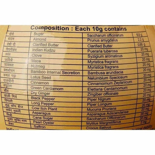 Patanjali Badam Pak Patanjali Badam Pak features a blend of ghee, sugar, clove, nutmeg, chironji, saffron, almonds, cinnamon, pistachios, and lar...