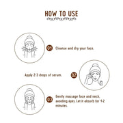 • Cleanse your face, then apply 2-3 drops of serum. Gently massage it onto your face and neck, avoiding eyes. Let it absorb before moisturizing. Use morning and night for best results