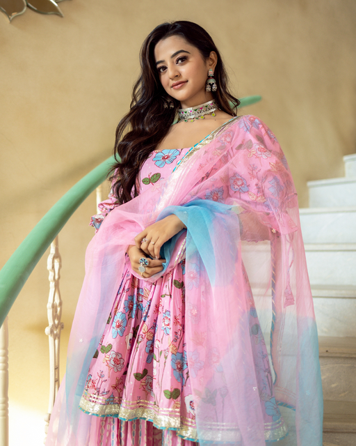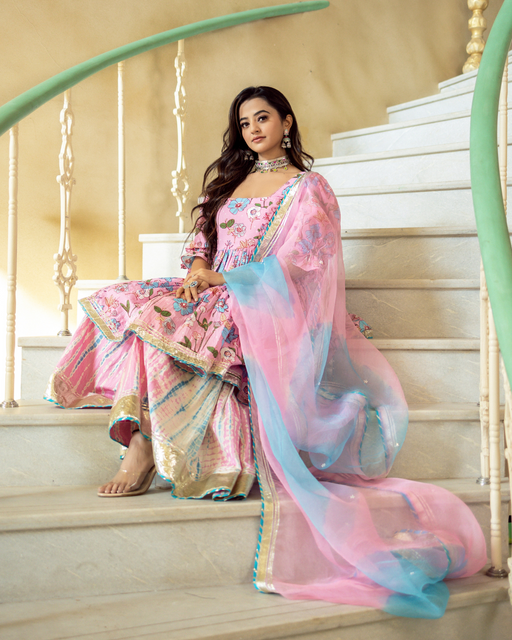 Our Gulbahaar Shibori Sharara Set in a soft pink hue is a super versatile outfit that can be worn to all special occasions. Be it a pooja at home, ...