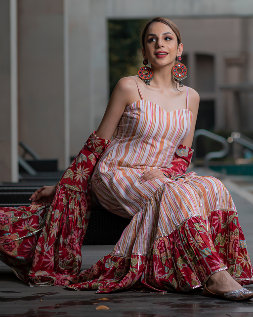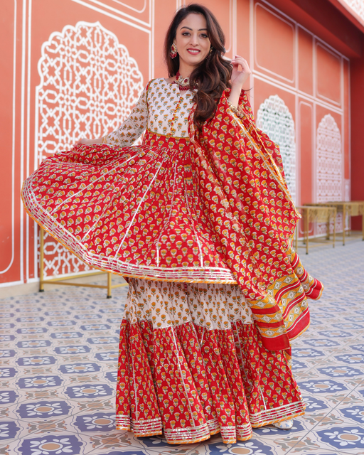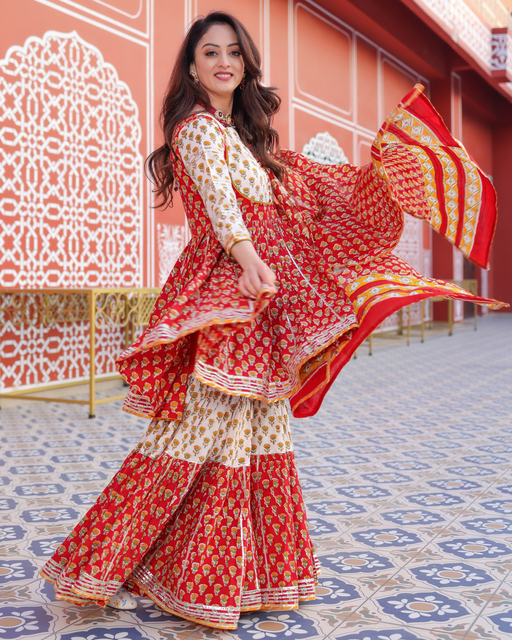 View full detailsRed Salsa Handblock Sharara Set
