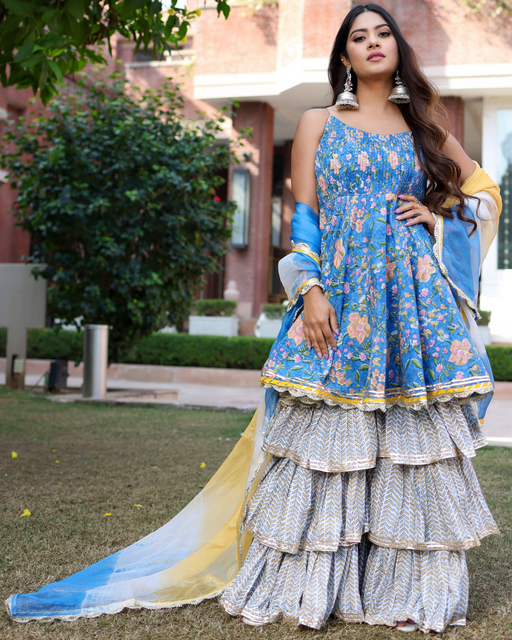 View full detailsSymphonic Blue Handblock Sharara Set