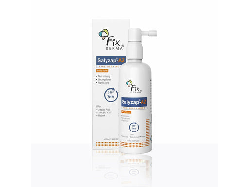 Fixderma Salyzap-AZ Body Spray is a powerful yet gentle solution for body acne, combining Salicylic Acid, Retinol, and Lipacide C8G. It unclogs por...
