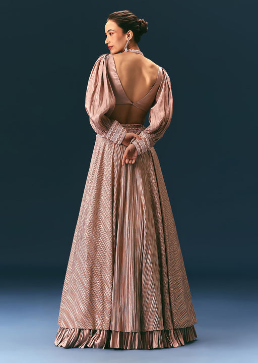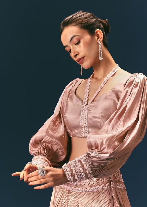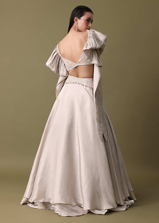 View full detailsNude Ruched Blouse With Cape And Layered Skirt