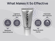 Cicatrix Scar Reducing Cream is a dermatologist-formulated solution that helps diminish scars, stretch marks, and post-acne marks. Powered by activated Centella Asiatica and Pinus Sylvestris extracts, it boosts skin regeneration, improves elasticity, and fades discoloration for a smoother, even-toned complexion. Enriched with ceramides, hyaluronic acid, and skin-soothing botanicals, Cicatrix deeply hydrates and strengthens the skin barrier. Ideal for sensitive and damaged skin, it is non-greasy, fast-absorbing, and suitable for daily use to support scar healing and skin repair.