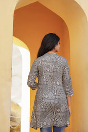 Juniper Grey Ethnic Motif Printed Viscose Tunic With Buttons