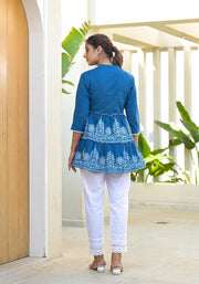 Juniper Indigo Ethnic Motif Printed Cotton Tunic With Thread Work & Sequins