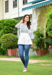 Juniper White Ethnic Motif Printed Viscose Tunic With Sequins & Thread Work