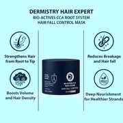 - Dermistry Bio-Actives CCA Root System Anti Hair Fall Control Mask & Serum is an intensive conditioning treatment designed to strengthen weak hair, reduce breakage, and improve overall hair smoothness. Enriched with Caffeine, Collagen, and Arginine, this nourishing mask helps support hair strength, resilience, and manageability.