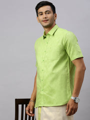 Men Cotton Rich Lite Green Shirt and Tissue Dhoti Set C82