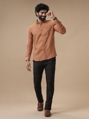 Men Pure Linen Brown Shirt L115