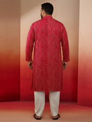 Men's Pink Bandhani Print Kurta with Cream Pyjama