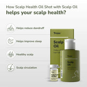 - Empty the small bottle of Scalp oil. Shake well before use. Gently massage your scalp for 5 minutes.