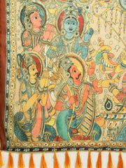 Beautiful Digital Print Kalamakri Design Soft Linen Saree