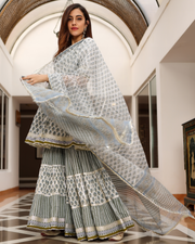 Blue Ciara Handblock Sharara Set