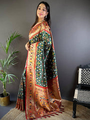 Green Patola Silk Zari Weaving Saree