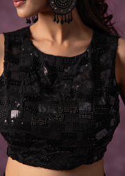 Elevate your casual look with this black waist-length sleeveless top featuring intricate beads and sequence embellishments. Made from manmade fiber with viscose lining, it offers a straight fit and round neck for stylish comfort.