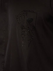 Make an impression with Vastramay's sleek black fine satin kurta set featuring sophisticated stone work embellishments. The mid-length kurta with stone embroidery on right chest and cuffs, paired with matching black flare pant creates a contemporary festive look perfect for Diwali celebrations and parties.