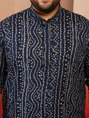 Embrace elegance with Vastramay's blue foil bandhani kurta set. Premium rayon with digital print and classic bandhani motifs, paired with comfortable cream cotton lycra pyjama for festive and wedding celebrations.
