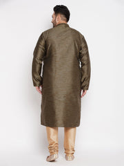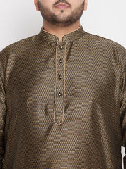 Men's Plus Size Black Woven Kurta And Rose Gold Pyjama Set