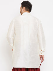 Men's Plus Size Cream Silk Blend Curved Kurta