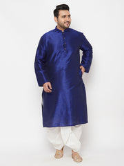 Men's Plus Size Dark Blue Silk Blend Kurta And White Dhoti Set