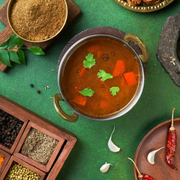 • For anyone who's a fan of authentic South Indian cooking, this rasam powder mix is a must-have. With high-quality ingredients roasted and ground to perfection, our rasam podi makes it easy to whip up a delicious bowl of rasam at home. Its soup-like consistency can be slurped up on its own, or served over a plate of steaming rice.