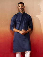 Vastramay Men Navy Blue Cotton Monalisa Embroidered Kurta