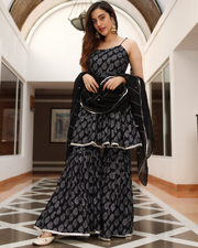 This three-piece handblock Gota Patti Sharara suit set.