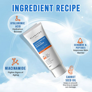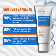 Experience superior sun protection with GLAMVEDA Ultra Light Broad Spectrum SPF 60 PA+++ Sunscreen. This advanced formula combines 1% hyaluronic acid, ceramides, peptides, and niacinamide and shield against blue light. Offering long-lasting moisturization without leaving a white cast, it effectively reduces dark spots, pigmentation, and signs of aging.