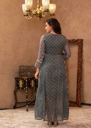 This Grey Floral Embroidered Cotton Dress Features Intricate Thread Work, Dori And Tassels, Along With Cotton Lace And Button Details The Flared Silhouette And Halter Neck Make It A Chic And Casual Choice For Any Occasion