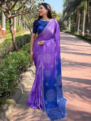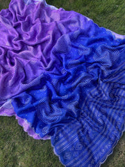 Technique for Work : Ombre Bandhej Print & Swaroski Stone Work Pallu And Border