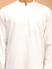 Grey organic solid straight knee length kurta, has a mandarin collar, long sleeves, button placket, a patch pocket, straight hem, and side slits.