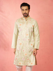 Men's Light Green Silk Blend Kurta