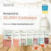 Namhya Ayurvedic Spiced Black Tea is a herbal tea blend made from traditional Ayurvedic herbs including Ashwagandha, Brahmi, Cinnamon, Cardamom, Fennel Seeds, Star Anise, and fresh Rose Petals. The tea is crafted in small batches using naturally dried herbs, with care taken to retain aroma and flavor. It comes in a resealable pouch suitable for daily brewing and consumption.