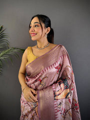 Elevate your ethnic charm with this exquisite Soft Gadwal Pattu Saree, where tradition meets artistic finesse. Crafted from luxurious silk, the saree features free-hand artist designs that reflect a graceful blend of creativity and culture. The fluid drape is complemented by a richly woven pallu, adding grandeur and depth to your look. Perfect for festive occasions or elegant gatherings.