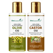 She Essentials 100% Pure Castor & Olive Oil For Skincare & Haircare