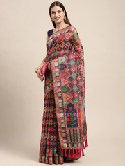 Soft Linen Mughal and Kalamkari Print Saree