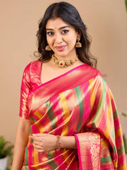 Radiant Pink-Gold Stripe Saree