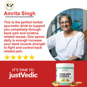 • Justvedic Back and Sciatica Support Drink is the best herbal Drink that helps with back pain, assists in getting relief from sciatica, and supports in case of a herniated disc. It provides support to improve flexibility and get relief from back pain. Back and Sciatica Support Drink consists of a unique blend of Ginger, Turmeric, Licorice, Holy Basil, Cinnamon, Lavender, Peppermint, Chamomile, Thyme, and Rosemary.