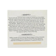 - French pink clay removes toxins, excess oil, and dirt from the surface of the skin, while almond powder provides the nourishment and softens the skin. Saffron is the star anti-oxidant leaving your skin with the perfect glow. Calming blood orange soothes and nourishes the skin.