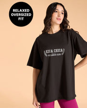 Kica Cotton Oversized Printed Graphic T Shirt Black