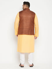 Fawn solid kurta with solid pyjama and coffee brown Nehru jacket