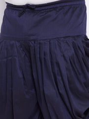 Navy Blue color dhoti pant, has elasticated waistband and drawstring closure.