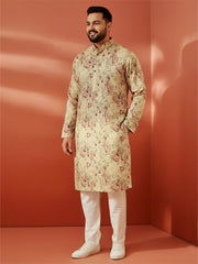 Men's Beige Printed Kurta with Cream Pyjama