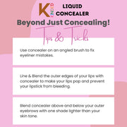 - Product benefits: Kinded Liquid Concealer makes your skin look clear, conceals dark circles and contours, corrects the appearance of redness, and covers your blemishes and dark spots, along with brightening dull skin.