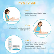 Step 3. For best results, use with our The caring Touch Diaper Rash Cream & Happy Bummies Baby Bum Butter!